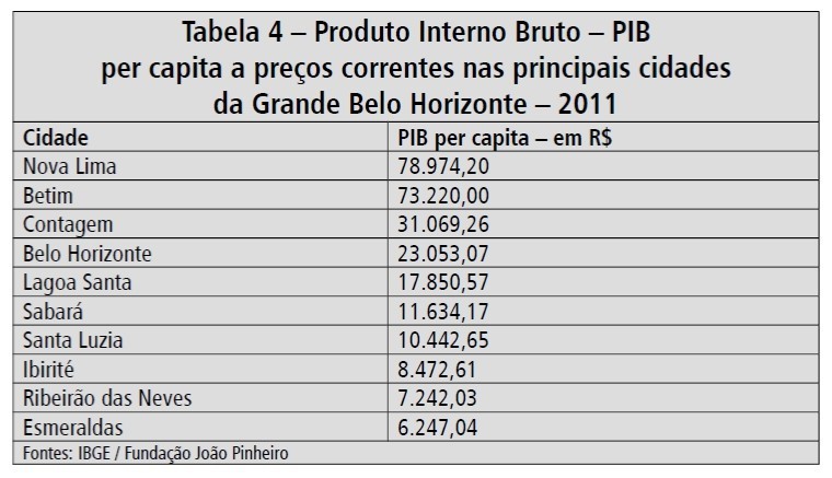Minas é muitas, dizia Guimarães Rosa. De fato, do ponto de vista econômico e social, nosso estado é um dos mais desiguais do Brasil. Temos regiões com PIB per capita equiparados aos estados mais ricos da federação, bem como regiões com este mesmo indicador inferior aos estados mais pobres do Nordeste. O Triângulo Mineiro (R$ 28.215,42 de PIB per capita), região Central (R$ 25.825,97), Alto Paranaíba (R$ 22,859,46), Sul de Minas (R$ 18.881,42) se equiparam a diversos estados do Sudeste. Já o PIB per capita de outras regiões – Jequitinhonha / Mucuri (R$ 7.255,52), Norte de Minas (R$9.276,98) - é inferior ao do Nordeste (R$ 11.044,59) e se equipara a dos estados mais pobres daquela região – como Maranhão, Piauí e Alagoas. E mais: temos também desigualdades intra-regionais graves, como no caso de grandes cidades dormitórios da Grande BH. Esmeraldas (R$6.247,04), Ribeirão das Neves (R$ 7.242,03), Ibirité (R$ 8.472,61), têm PIB per capita inferiores a das regiões mais pobres de Minas, como Jequitinhonha / Mucuri e Norte de Minas, o que faz destas cidades enclaves de miséria em uma região rica como a Grande Belo Horizonte. E mesmo nas cidades mais ricas, como Belo Horizonte, Betim e Contagem, existem bairros e regiões de elevada exclusão social. Veja as tabelas 3 e 4.
