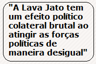 R. Não podemos levar isso em consideração porque aí estaríamos fazendo teoria da conspiração. O que sim existe, objetivamente, é a exclusão do jogo político de determinadas forças e não de outras. Mas aí eles dizem que existe um processo judicial que está sendo cumprido e que está levando a esse resultado. Sim, mas você adotou uma nova maneira de perseguir judicialmente e processar penalmente que tem uma consequência politica. Então o Moro e TRF-4 vão dizer que eles não têm nada com isso, que isso é Justiça e que não podem se preocupar com as consequências políticas. Bom, isso significa que você não se preocupa com a política do seu país. Mas então por que fizeram uma intervenção no jogo ao divulgar os áudios? Se estão dizendo que não se importam com as consequências políticas, então também não têm direito de intervir na política. Mas intervieram. Quando isso acontece, Moro opta por uma certa base popular da Lava Jato, que é antipetista. A partir daquele momento, não existe mais neutralidade política da Lava Jato. Aquele ato mudou a história do país de uma tal maneira que a Lava Jato vai, progressivamente, se identificando como uma força antiPT. O que não necessariamente era antes. Mas naquele momento a avaliação foi a de que não dava para ter uma base tão ampla de apoio, então optaram por reduzi-la, mas mantendo sólida para continuar a operação. Naquele momento houve uma opção política e a consequência estamos vendo agora, que é a de excluir a força que lidera as eleições do jogo.